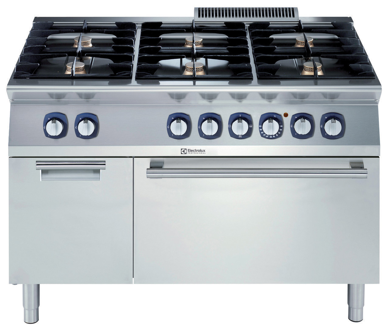 FORNUIS, 6 open branders, 6x 5,5 kW, elektrische oven 6 kW, draaideurkast* Fornuis met zes open branders Ø60 mm van 5,5 kW,